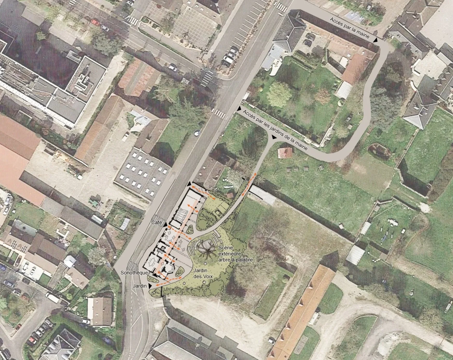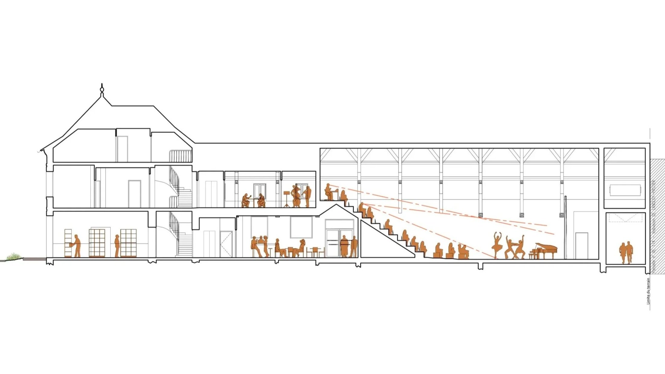| Lieu : Le Plessis-Belleville| moa : Fond de dotation Vive Voix | moe: MeKA architectes mandataires | Optimum Structure | Axoé | Armoni Acoustique | P. Loison | surface : 580 m² | budget : 1,7 M€ |